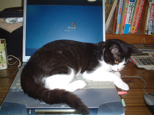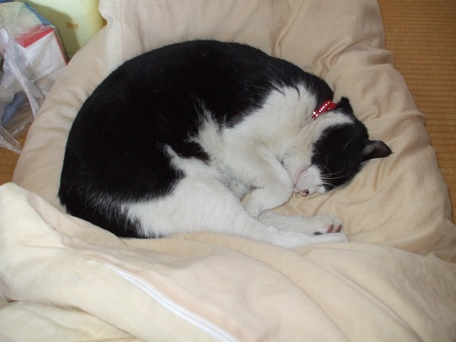 下の写真は、深夜、暖房の効いた私の部屋へ来たトム。