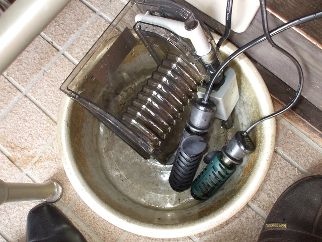 妻に手伝ってもらって、金魚水槽の大掃除をしました。