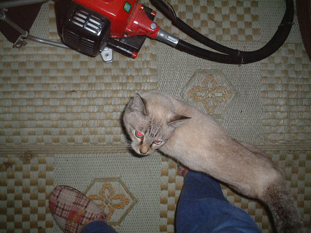 納屋の部屋の中に入ると、タマがすり寄ってきます。