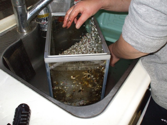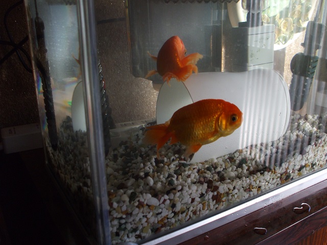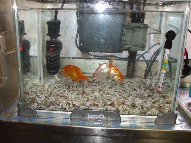 妻に手伝ってもらって、金魚水槽の大掃除をしました。