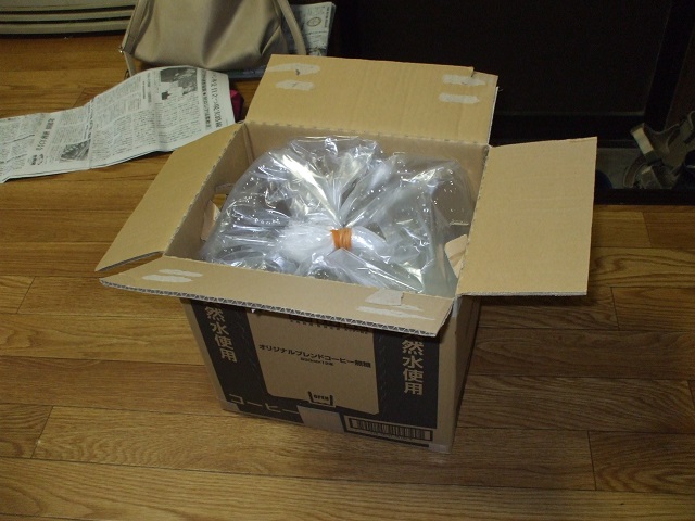 6月27日(日)、ヤフオクで落札したらんちゅうが段ボール箱に入ってやってきました。(上の写真)