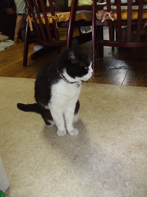 納屋の部屋の中に入ると、タマがすり寄ってきます。